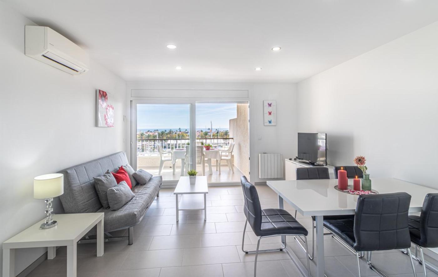Two-Bedroom Apartment with Terrace - Port Grec 2 4º 2. Featuring a private furnished terrace with sea views, this apartment has an open-plan kitchen with a ceramic hob, oven, washing machine and kitchenware. There is a double bedroom and a bedroom without windows with bunk beds for 2 people. The apartment is located in a building with a lift, 1 km from the beach. Heating is available at an extra cost.
